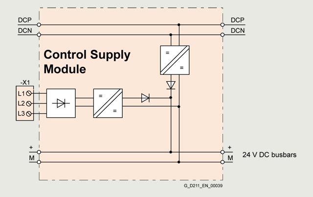 直流链路电压 510 ...720 V DC 电源电压 380 ...480 V 3 AC | 书本型控制电源模块 (内部空气冷却) |